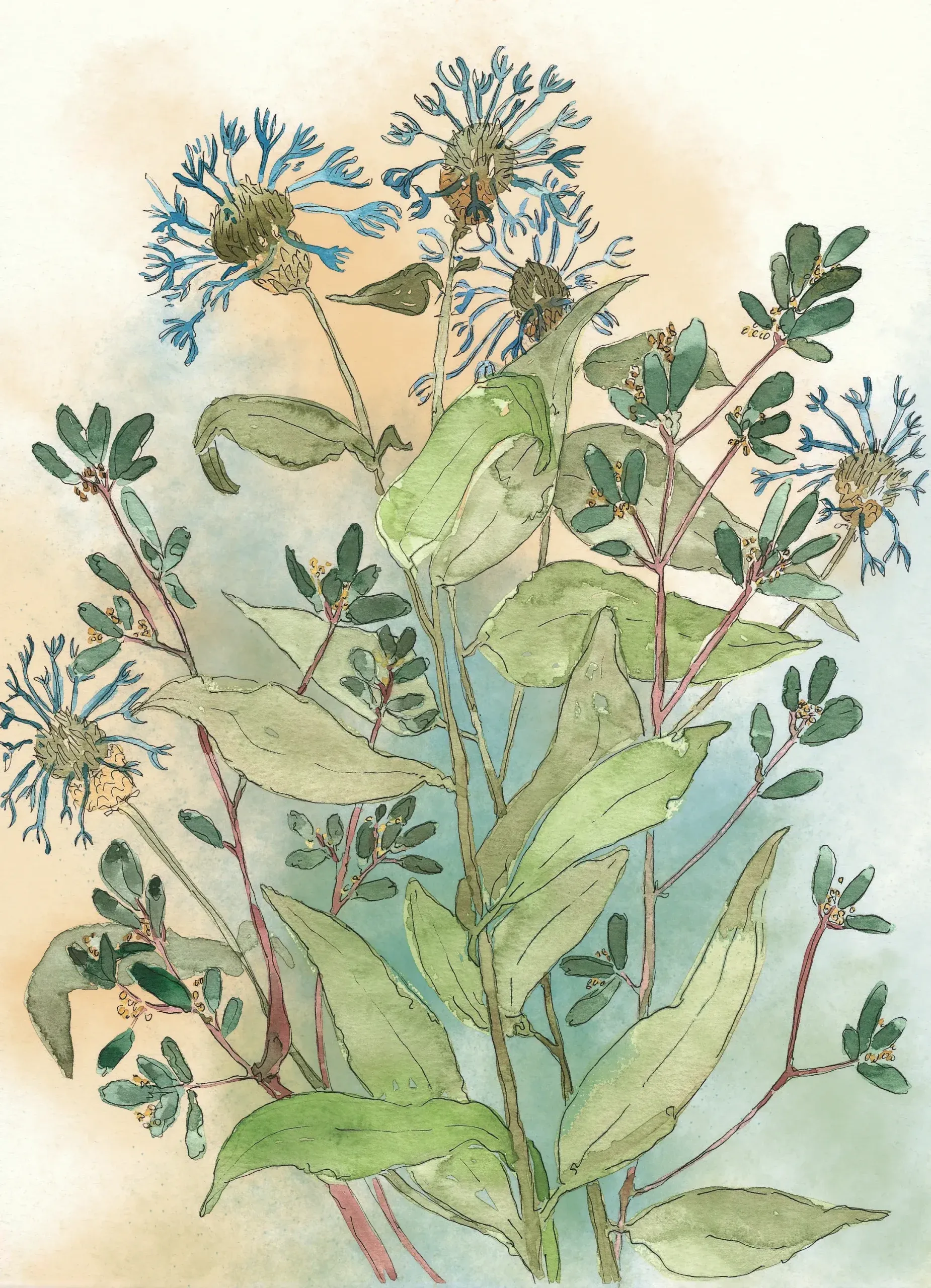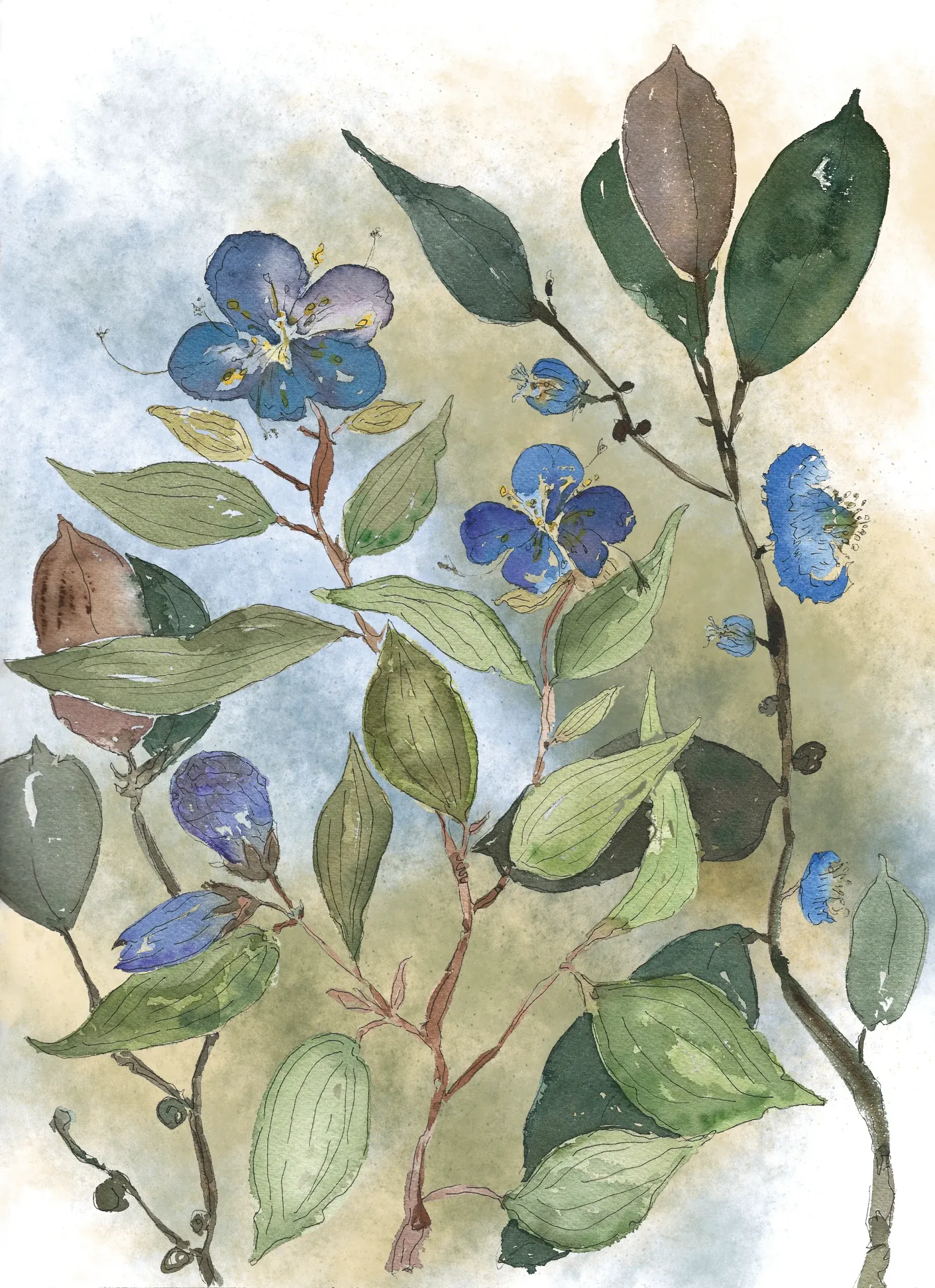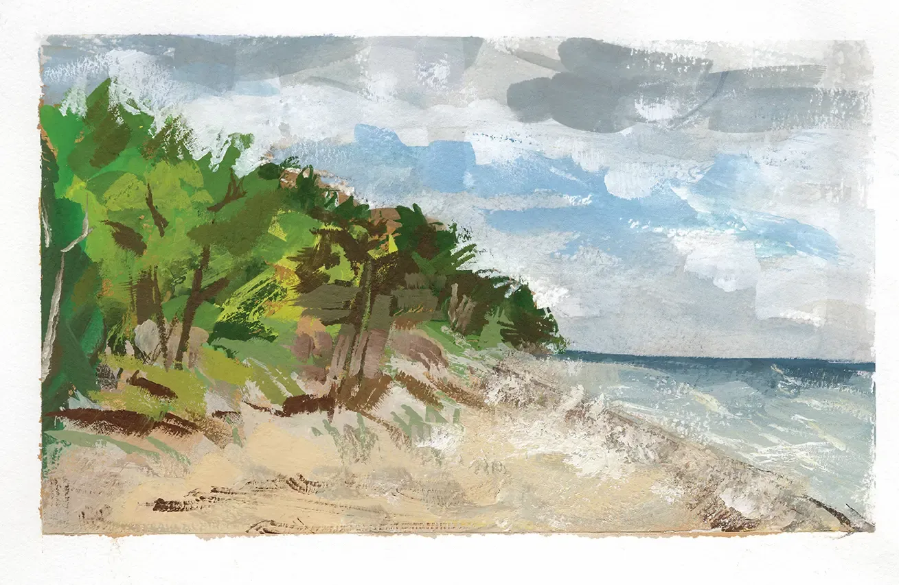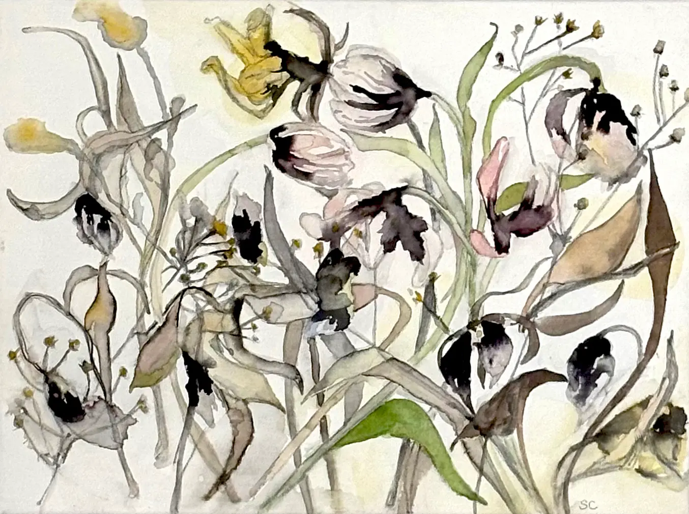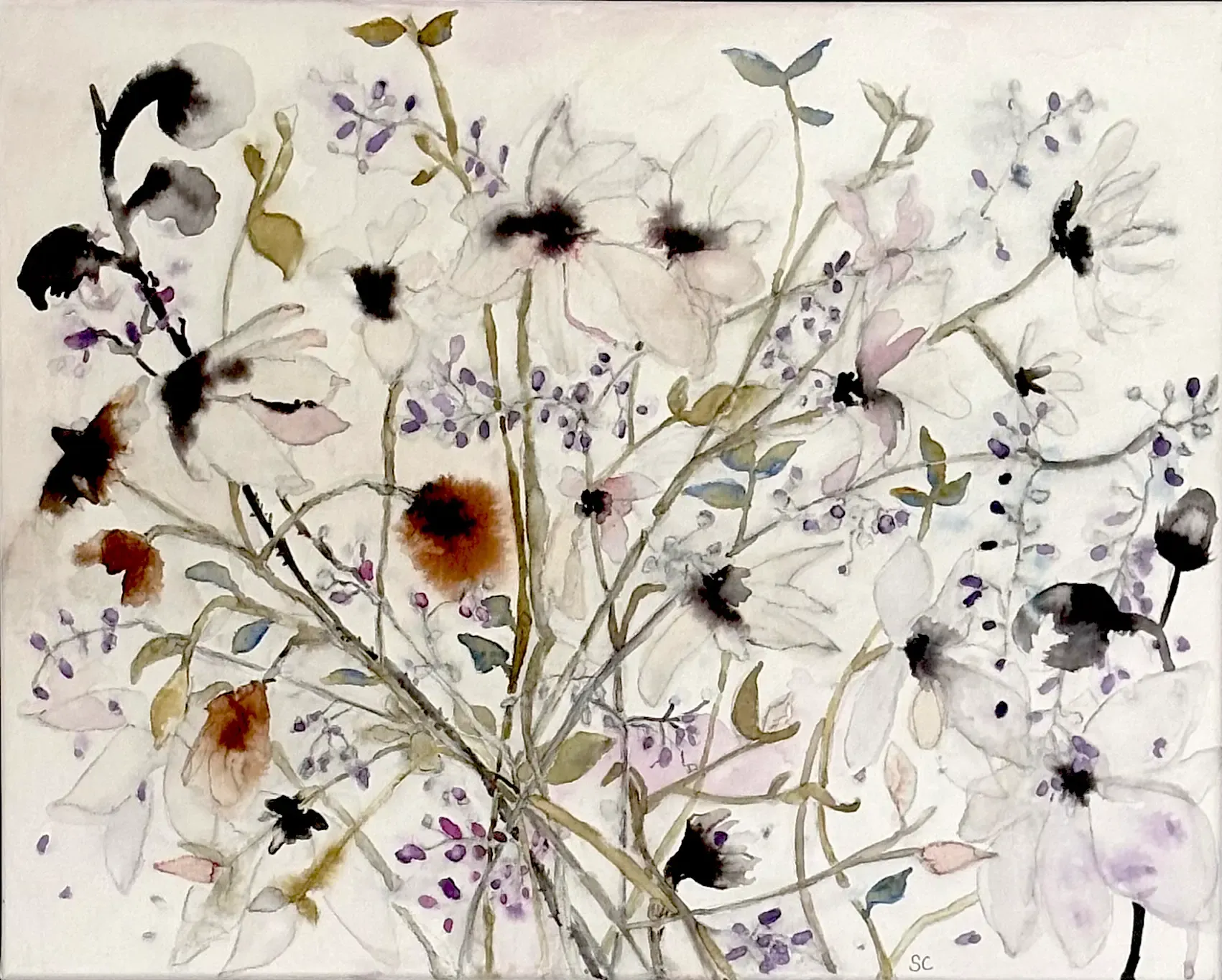Susie Campion’s portfolio reflects her deep connection to both the natural world and the environments we create. From vibrant botanical watercolors to layered gouache streetscapes and her signature textured compositions, each piece tells a story of impermanence, design, and beauty in transition. Her collections offer a window into the harmony and tension between form and nature, making every work uniquely compelling.